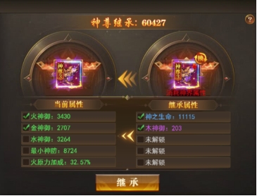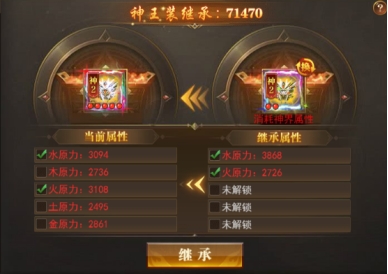 a. 神1及以上的神王装备可开启属性继承功能,消耗神界属性进行继承;