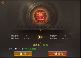 消耗神尊装备强化石(分解神尊装备获取)可强化各神尊神装部位,获得大量神界基础属性。