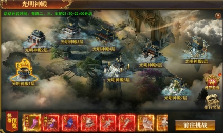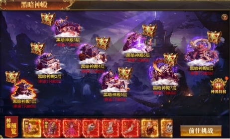 迷雾弥漫黑暗神殿,视野范围受限,寻找传送使者进入下一层,每周达到对应层数可获得额外奖励。